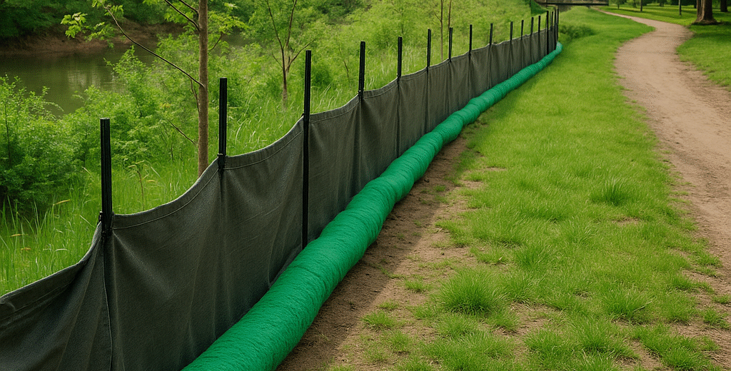 Our trenchless BioSock erosion barriers were the perfect fit. Unlike silt fencing that requires digging and disturbs the landscape, our compost-filled socks were installed directly onto the ground surface with minimal impact to the environment. Made from natural materials, they allowed water to pass through while holding sediment firmly in place. Over time, they also helped encourage native plant regrowth and reduce long-term maintenance costs.